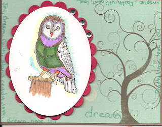 I am so happy to be part of such a wonderful Design team. The stamps are whimsical and offer themselves to a variety of uses. The owl reminded me of vigilance. A word we don't see often these days.